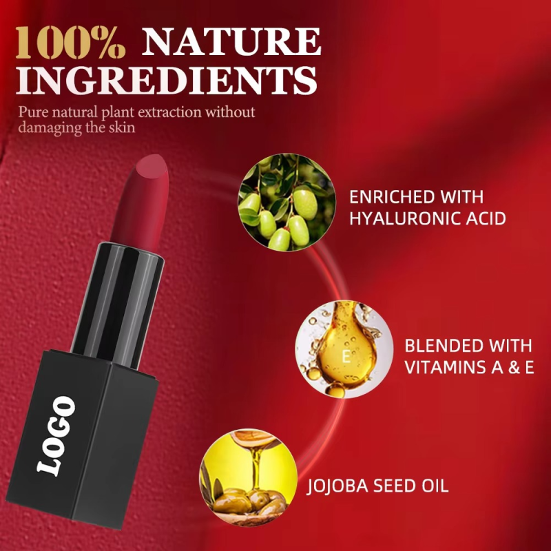 Customized Vegan Mineral Moisturizing Waterproof Long-lasting Matte Lipstick OEM ODM Private Brand image